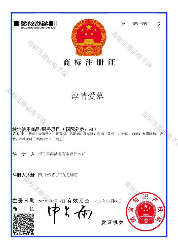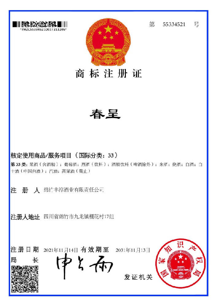 綿竹豐淳酒業(yè)有限責任公司目前擁有員工100余人,專業(yè)技術人員20人(其中高級釀酒師6人、高級品酒師9人、全國白酒評委1人、四川省白酒省級評委2人、企業(yè)首席質量官1人)。擁有注冊商標49件、著作權登記作品2件、商品條碼289件。
